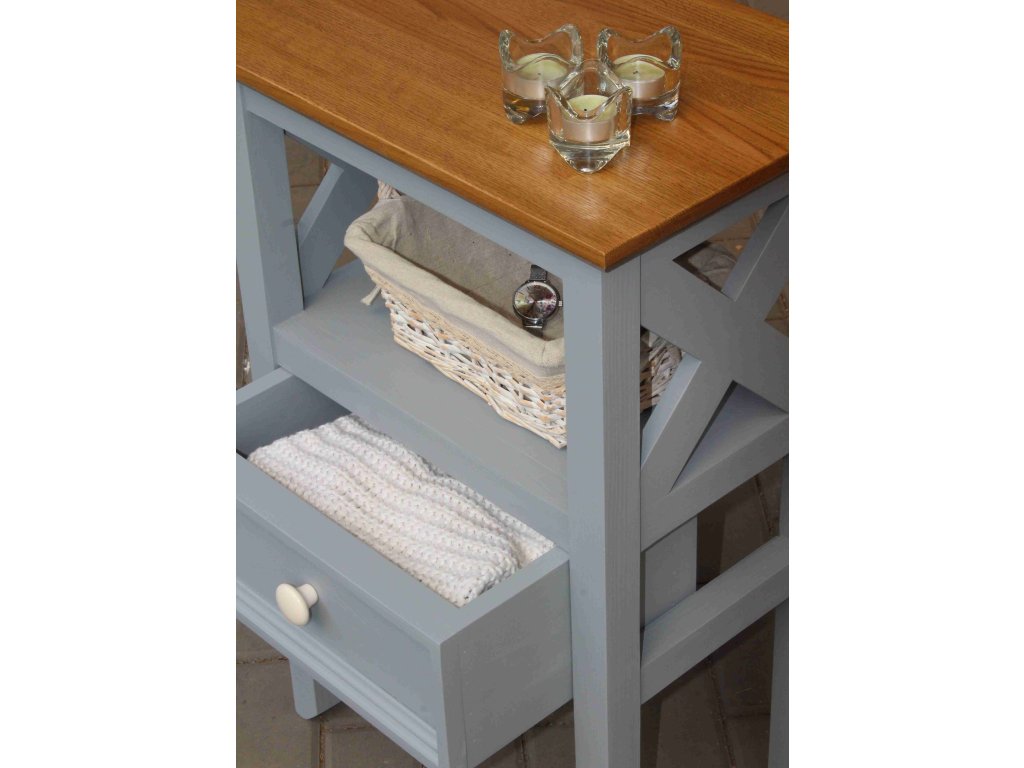 Odkládací stolek z masivu PROVENCE se společně s dalším nábytkem z kolekce Provence stane dominantou Vaší ložnice.