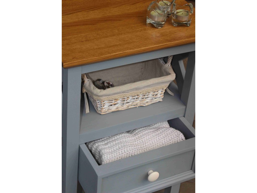 Masivní odkládací stolek PROVENCE je stolek vyrobený z masivního bukového dřeva, které je ošetřeno akrylovou barvou v olivovém odstínu, a z masivního dubového dřeva (horní deska), které je ošetřeno lakem. Díky spojení těchto dvou druhů masivního dřeva získal stolek jedinečný vzhled, který zdokonalí veškerý interiér.