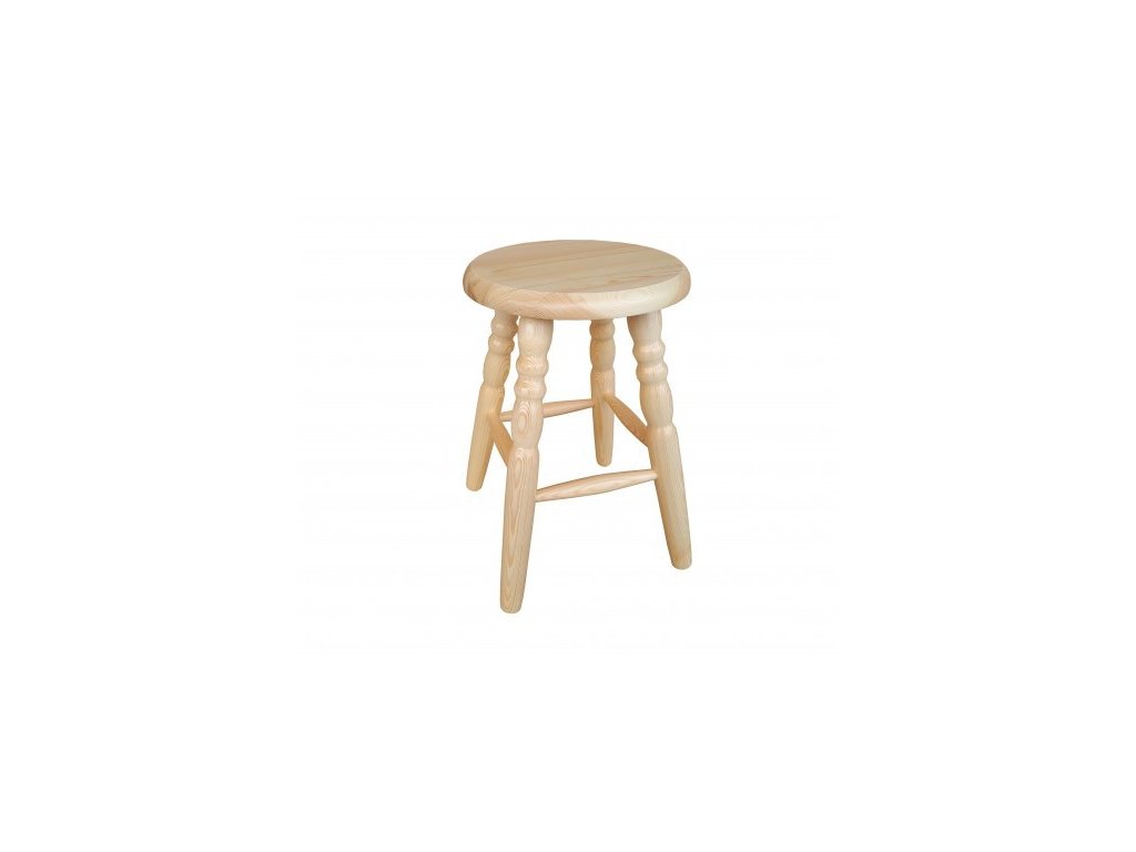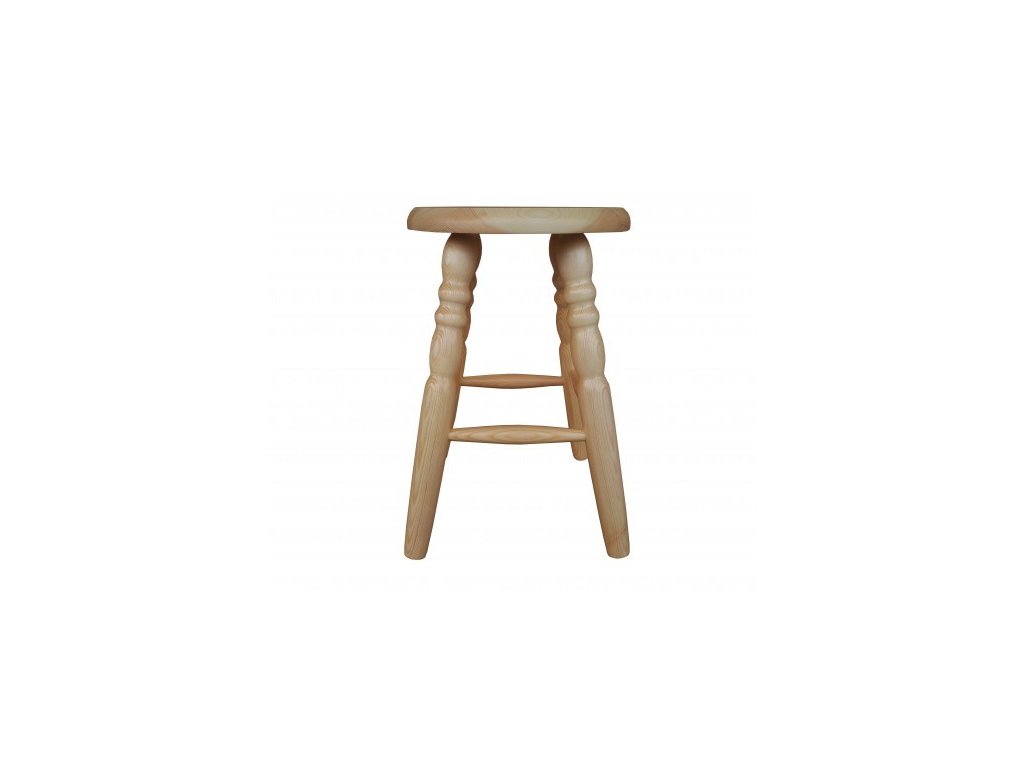 Barová stolička je skvelým doplnkom do kuchyne, jedálne alebo baru. Je vyrobená z masívneho borovicového dreva a ošetrená bezfarebným lakom. Tento stôl je k dispozícii v rôznych výškach, sedadlo je okrúhle a stojí na štyroch frézovaných nohách. Priemer sedáku je približne 30 cm.