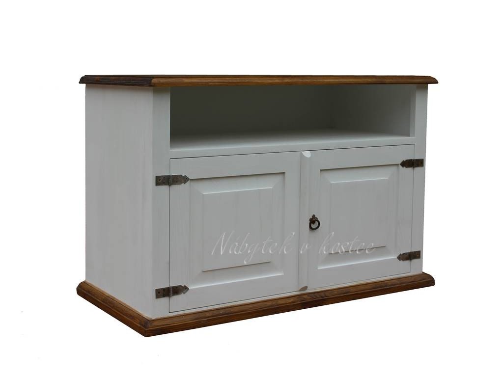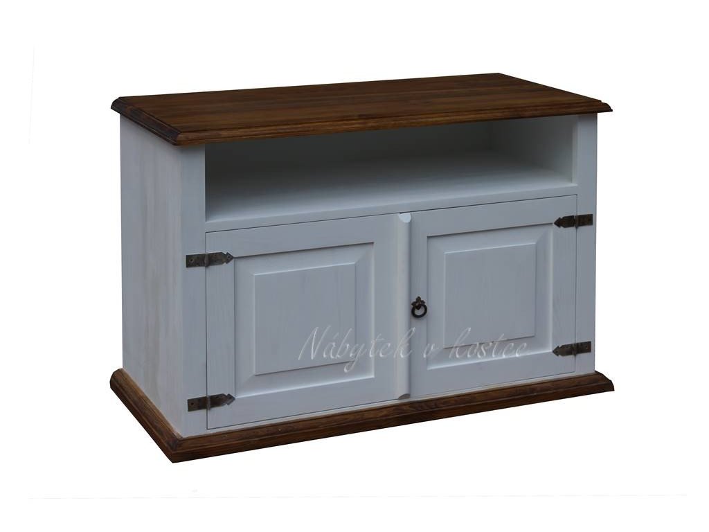 TV stolek z masívu SWEET HOME je masivní televizní komoda, vyrobena z borovicového masivního dřeva (zadní stranu tvoří tvrdší sololitová deska). Televizní komoda je ošetřena pouze bílou vodou ředitelnou barvou, anebo ve dvojbarevné kombinaci (viz. vzorník). Ze dřeva jsou rovněž vyrobeny i pojezdy na šuplíky a police. Pro snazší údržbu doporučujeme objednat nábytek s vrchní hnědou deskou v lakované verzi.