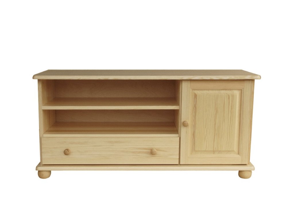 Televizní stolek z masivu je klasický TV stolek se skříňkou, šuplíkem a policí, který je vyroben z jakostního borovicového dřeva a ošetřen ekologickým lakem, který zamezí drobnému mechanickému poškození, a zároveň dá vyniknout přirozené kráse dřeva.