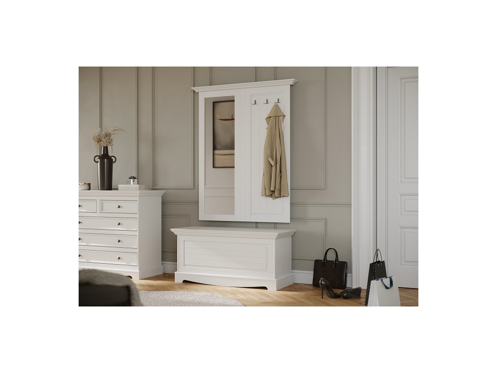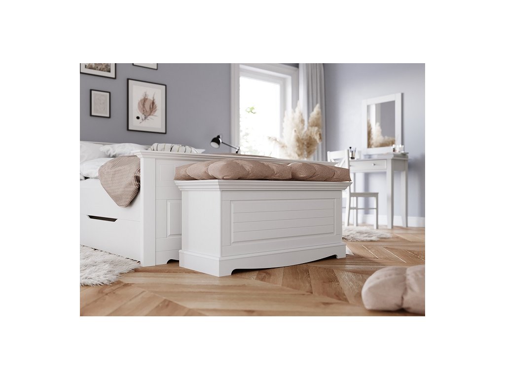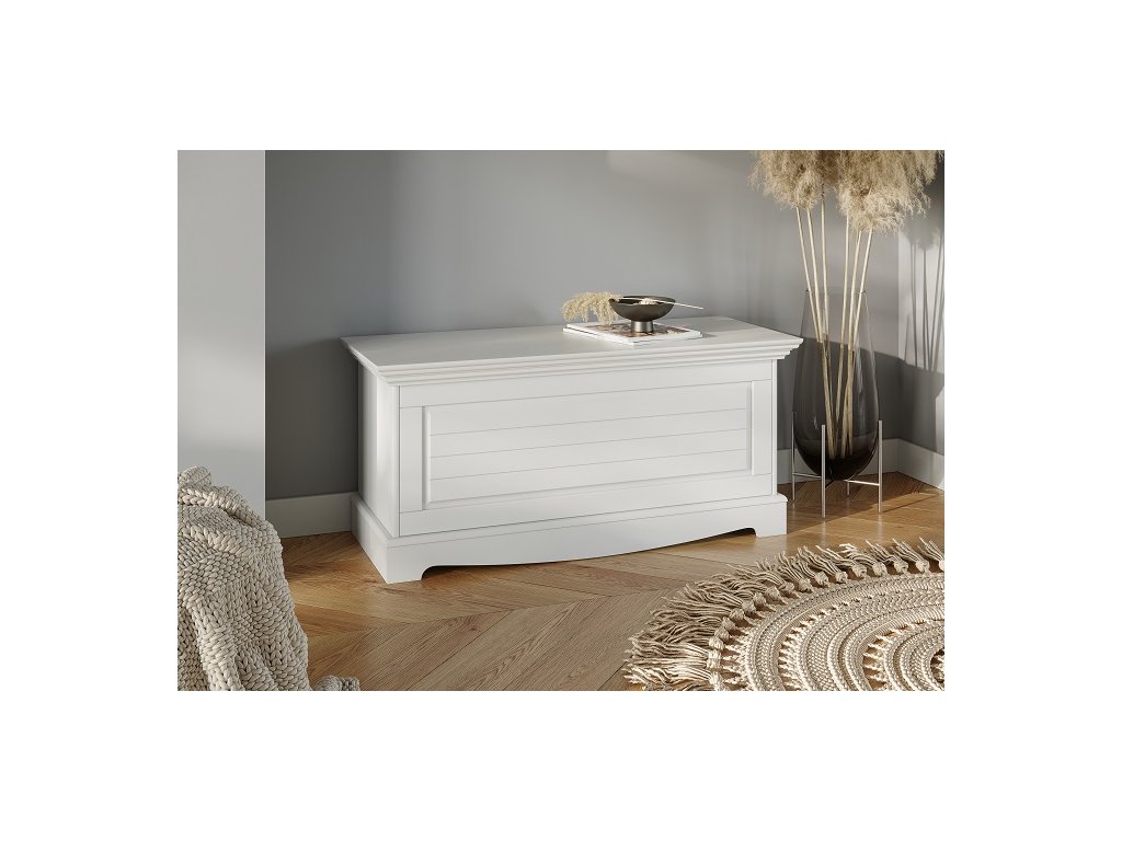 Biela hruď predstavuje provensálsky štýlktorý sa odráža v detailoch, ako sú ozdobné rezby alebo dekoratívna tabuľka. Kolekcia BELLUNO Elegante ponúka ďalšie farebné varianty truhlice. Truhlice sú vhodné pre vaše spálňa, do obývacej izby alebo detskú izbu.