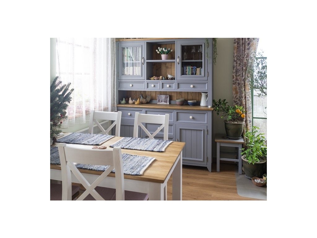 Kolekcia PROVENCE ide o štýlový, vkusný a jemný nábytok v obľúbenom francúzskom štýle. Nábytok Provence je vyrobený z masívneho bukového dreva a ošetrený akrylovou farbou v bielej alebo sivomodrej farbe. Horné hnedé časti sú vyrobené z masívneho dubového dreva a ošetrené lakom. Kombináciou týchto dvoch materiálov sme dosiahli veľmi efektný vzhľad, ktorý nikto hneď tak neprehliadne.