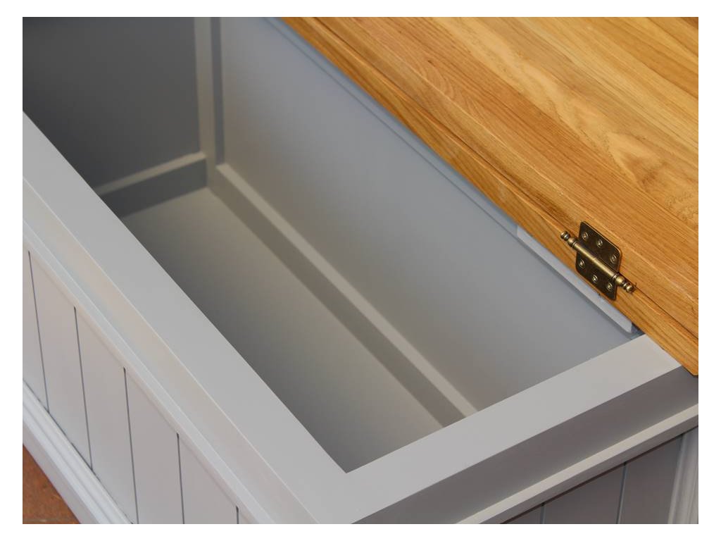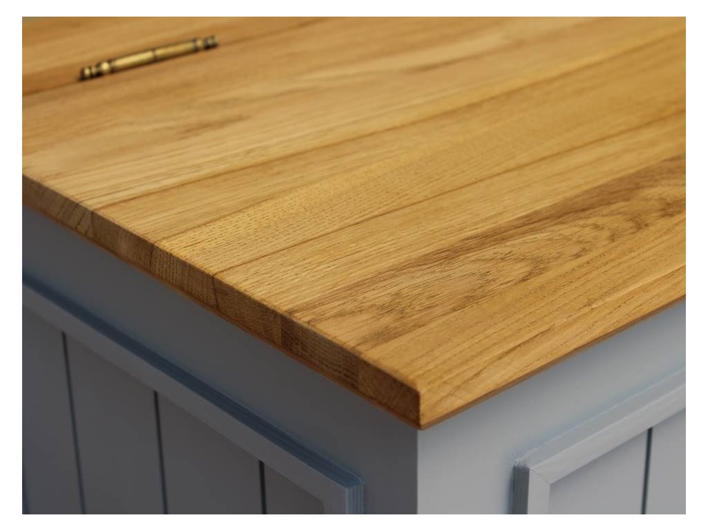 Masívna komoda PROVENCE je kombináciou bukového a dubového dreva. Dubové drevo (vrchná doska) je ošetrené lakom a bukové drevo je ošetrené akrylovou farbou sivomodrej farby.