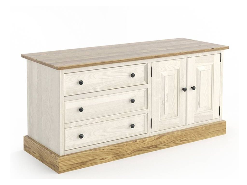 TV stolek z masivu TOSKANIA je nádherný televizní komoda z masivu, která okouzlí svým dokonalým stylem a elegantním tvarem s prvky toskánského temperamentu. Komoda je vyrobena z borovicového dřeva a ošetřena bílou barvou (zn. STARWAX), anebo ve dvoubarevném provedení (viz. vzorník) - bílá - přírodní, bílá - hnědá, bílá - tmavě hnědá. Hnědé odstíny jsou značky SOPUR.