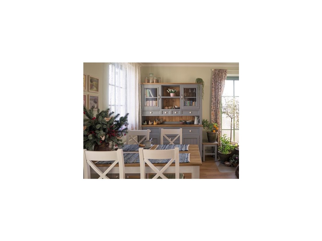 Kolekcia PROVENCE ide o štýlový, vkusný a jemný nábytok v obľúbenom francúzskom štýle. Nábytok PROVENCE je vyrobený z masívneho bukového dreva a ošetrený akrylovou farbou v bielej alebo sivomodrej farbe. Horné hnedé časti sú vyrobené z masívneho dubového dreva a ošetrené lakom. Kombináciou týchto dvoch materiálov sme dosiahli veľmi efektný vzhľad, ktorý nikto neprehliadne.