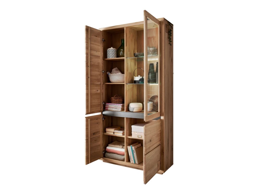 Ak sa chystáte zorganizovať obývaciu izbu, jedáleň alebo pracovňu v modernom štýle a hľadáte úložný priestor, kde by ste mohli uložiť deky, obrusy, škatule s ozdobami, fotoalbumy alebo rôzne dokumenty a zároveň by ste si mohli vystaviť ozdobné misky, suveníry alebo obľúbené knižné výtlačky, potom je 2D vitrína REGATA z masívneho dreva presne pre vás. Je to vitrína, ktorá esteticky osvieži interiér a dokonale doplní nielen moderné, ale aj loftové či industriálne interiéry.