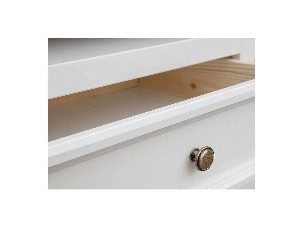 Rustikálna vitrína BELLUNO Elegant je vyrobená z masívnej fínskej borovice. Teplá biela farba, ktorá pokrýva povrch nábytku, krásne vyplní interiéry v provensálskom štýle, ako aj interiéry v škandinávskom štýle. Fínska borovica vyniká svojou odolnosťou a krásnou štruktúrou dreva, ktorú cítiť pri každom dotyku.