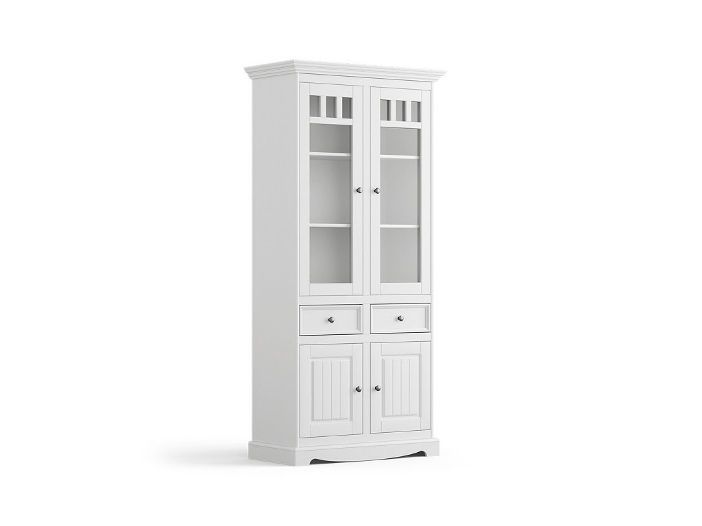 Rustikálna vitrína BELLUNO Elegant je vyrobená z masívnej fínskej borovice. Teplá biela farba, ktorá pokrýva povrch nábytku, krásne vyplní interiéry v provensálskom štýle, ako aj interiéry v škandinávskom štýle. Fínska borovica vyniká svojou odolnosťou a krásnou štruktúrou dreva, ktorú cítiť pri každom dotyku.