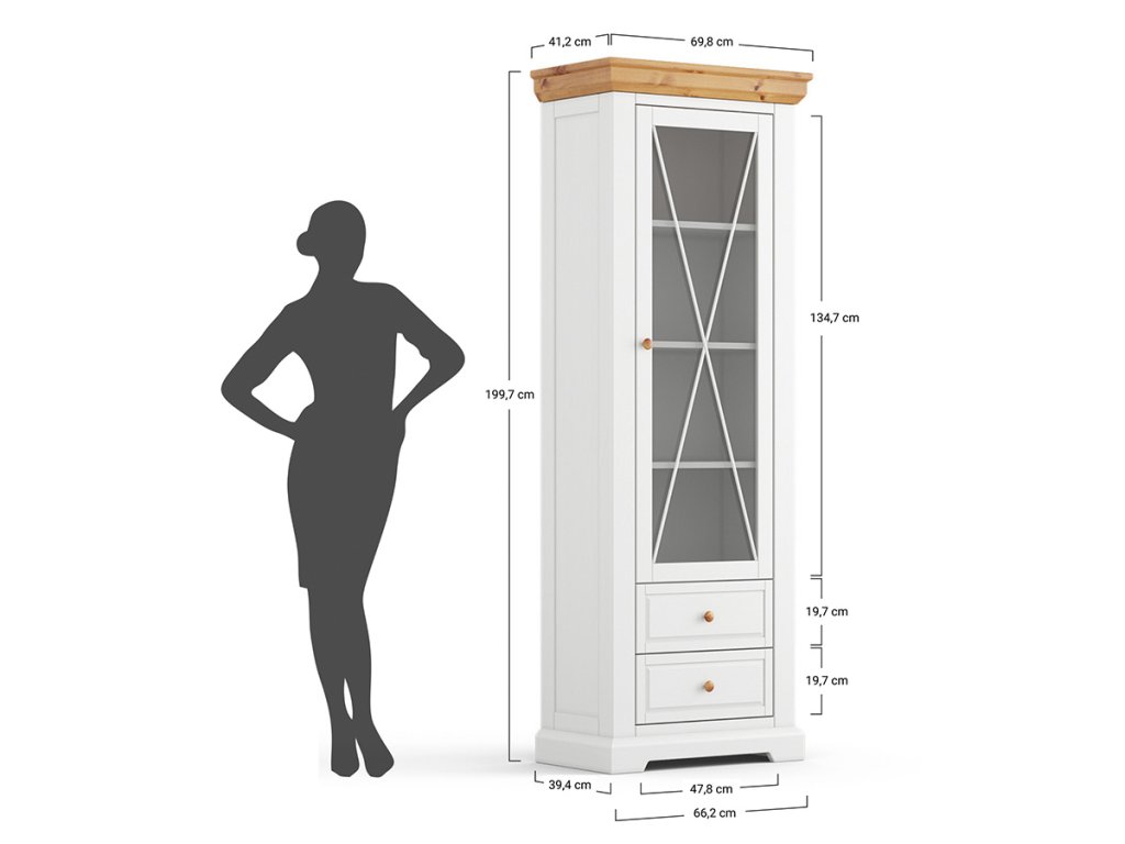Vitrína z masivu patří do kolekce MARONE Elite kde jí najdete také v bílé barvě. Každý kousek z kolekce MARONE Elite je navržen tak, aby přinesl do domova nejen krásu, ale i funkčnost, od praktických úložných prostor až po promyšlené detaily, jako jsou dřevěné úchytky nebo jemné dekorativní linie. Nábytek z této kolekce se skvěle kombinuje mezi sebou a díky své univerzálnosti skvěle zapadne jak do venkovského stavení, tak do městského bytu, kde vykouzlí pocit klidu a domova s venkovskou duší.