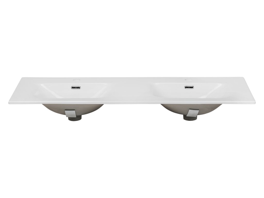 Dvojité umývadlo Sky je kvalitné keramické umývadlo určené na zabudovanie do umývadlové skrinky s celkovou šírkou 120 cm. Umývadlo Sky je vyrobené z vysokokvalitnej sanitárnej keramiky, ktorá sa vyznačuje odolnosťou voči vodnému kameňu, hrdzi a zmene farby. Umývadlo Sky je navrhnuté s ohľadom na praktickosť, ponúka veľa úložného priestoru a zaručuje vysoký komfort nielen pri používaní, ale aj pri čistení. Dvojité umývadlo Sky má prepad a otvory na umiestnenie kohútikov, ktoré však nie sú súčasťou dodávky.